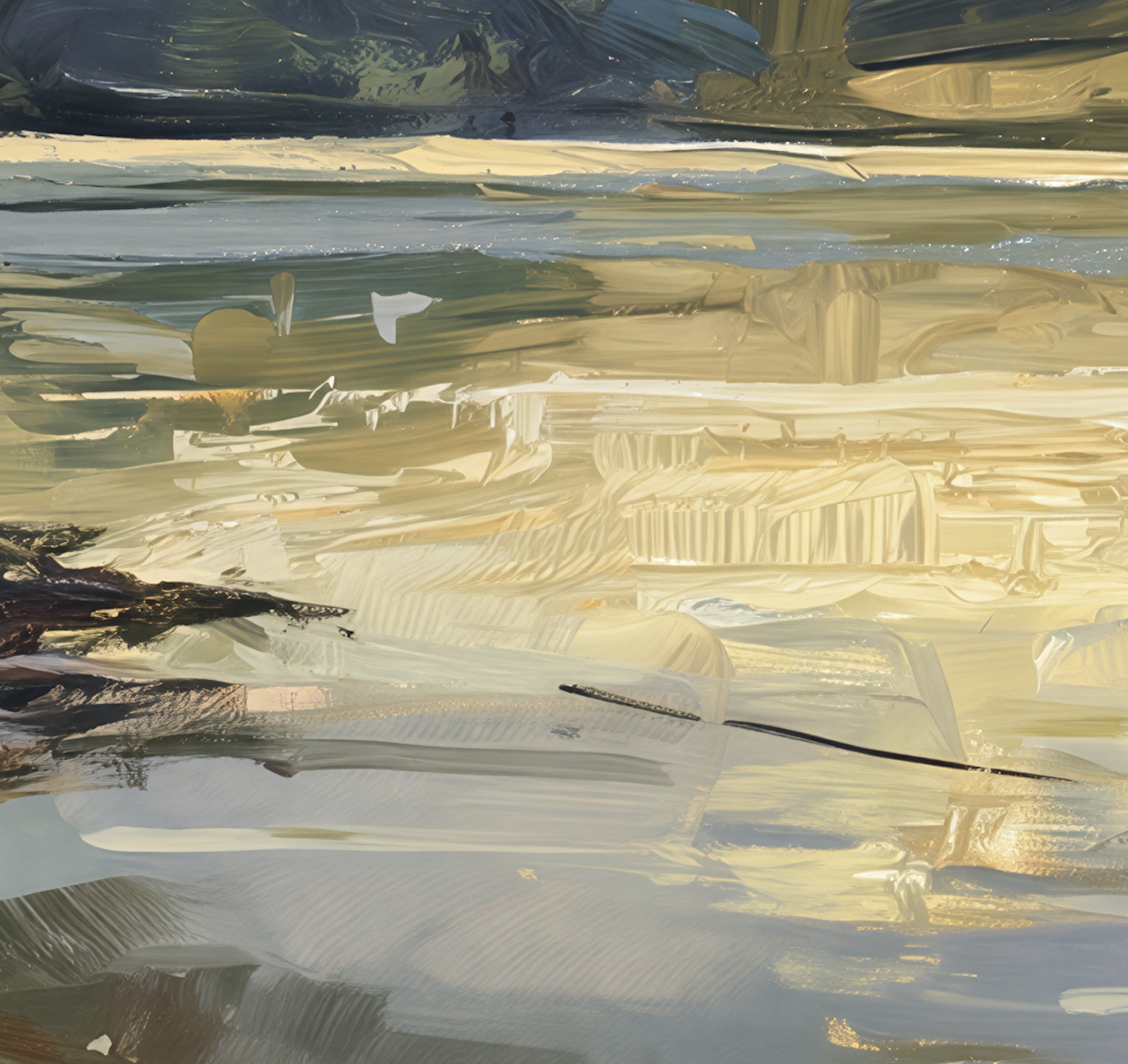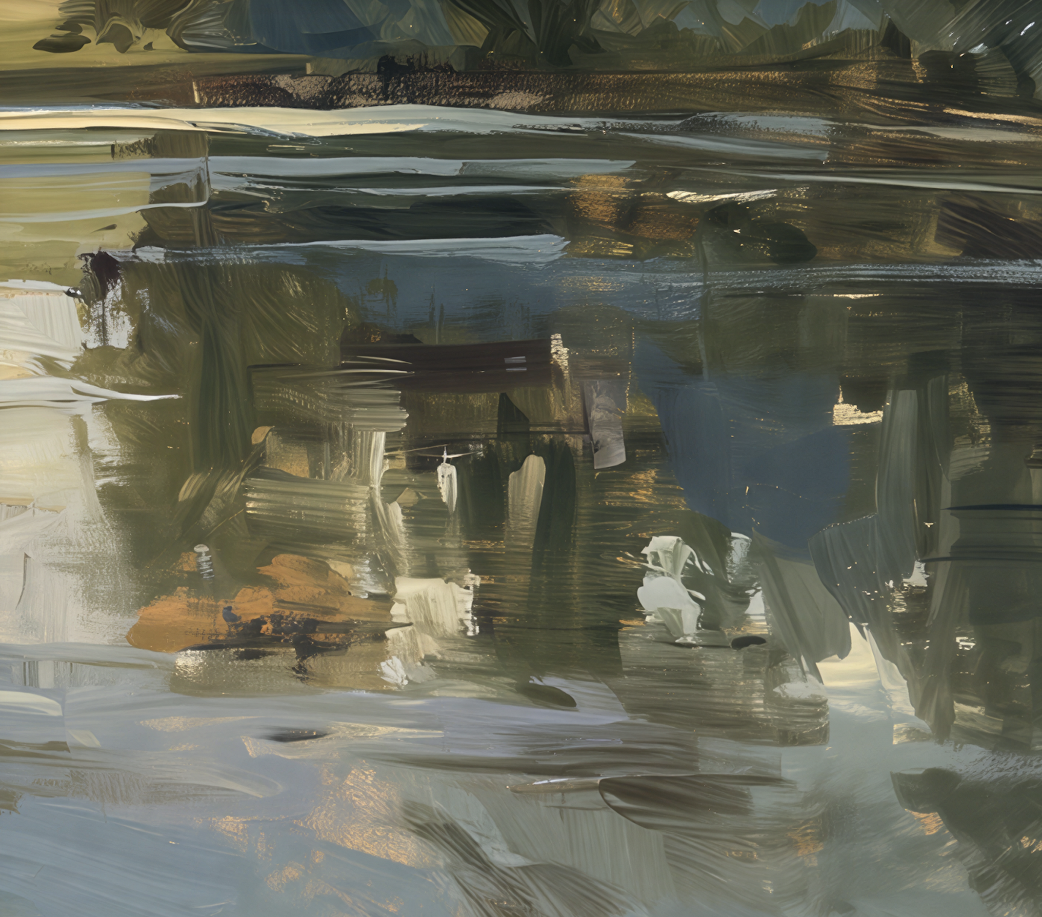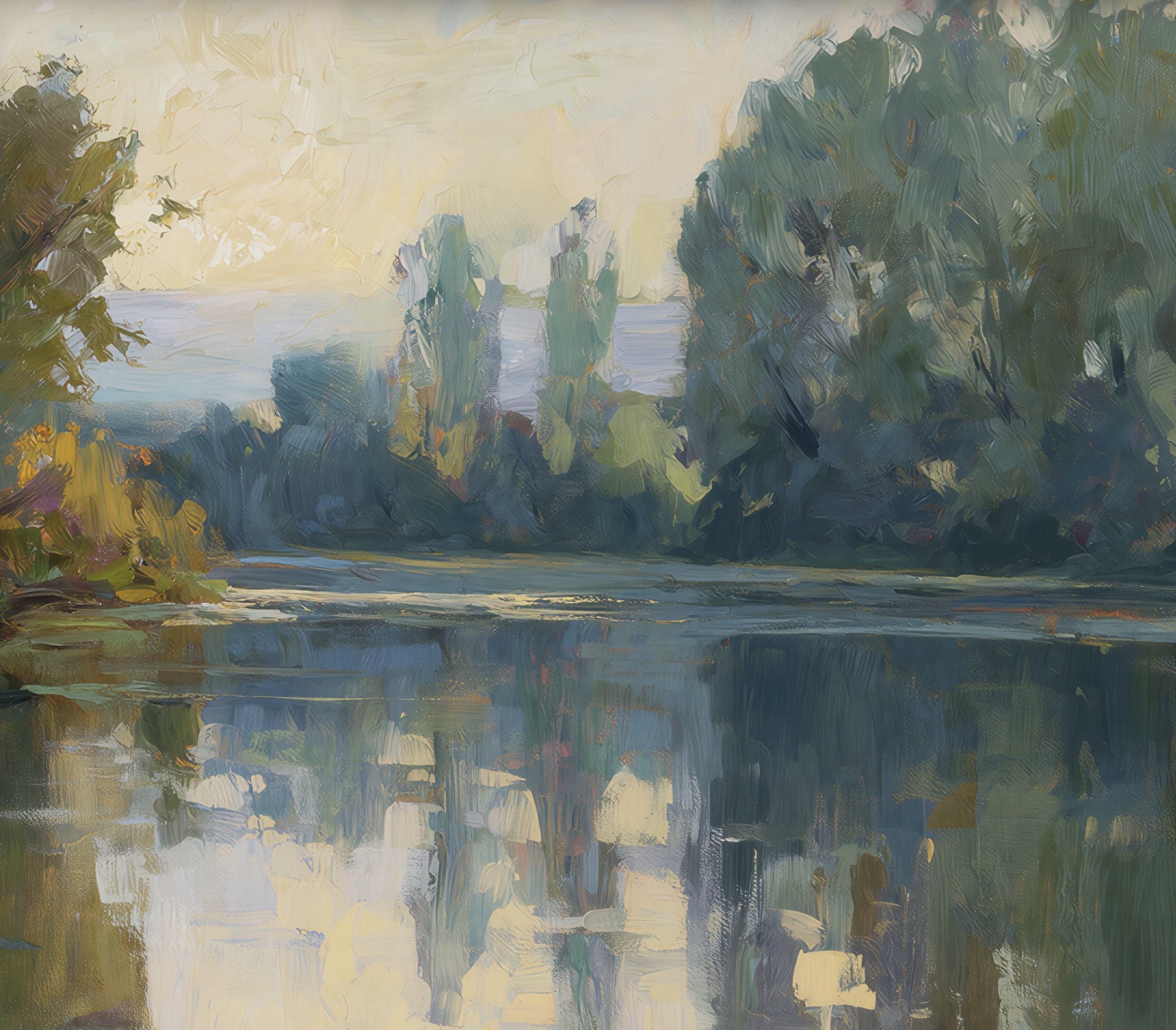 Some move closer to the bank, where the light catches in grasses and along uneven edges, breaking into smaller pieces. Others stay out in open water, where the color spreads and blends until it’s hard to tell what’s reflection and what’s coming from above. And in a few, there are those quieter tones—lilac, muted blues, soft greens—that don’t show themselves right away, but sit there once you start looking.
