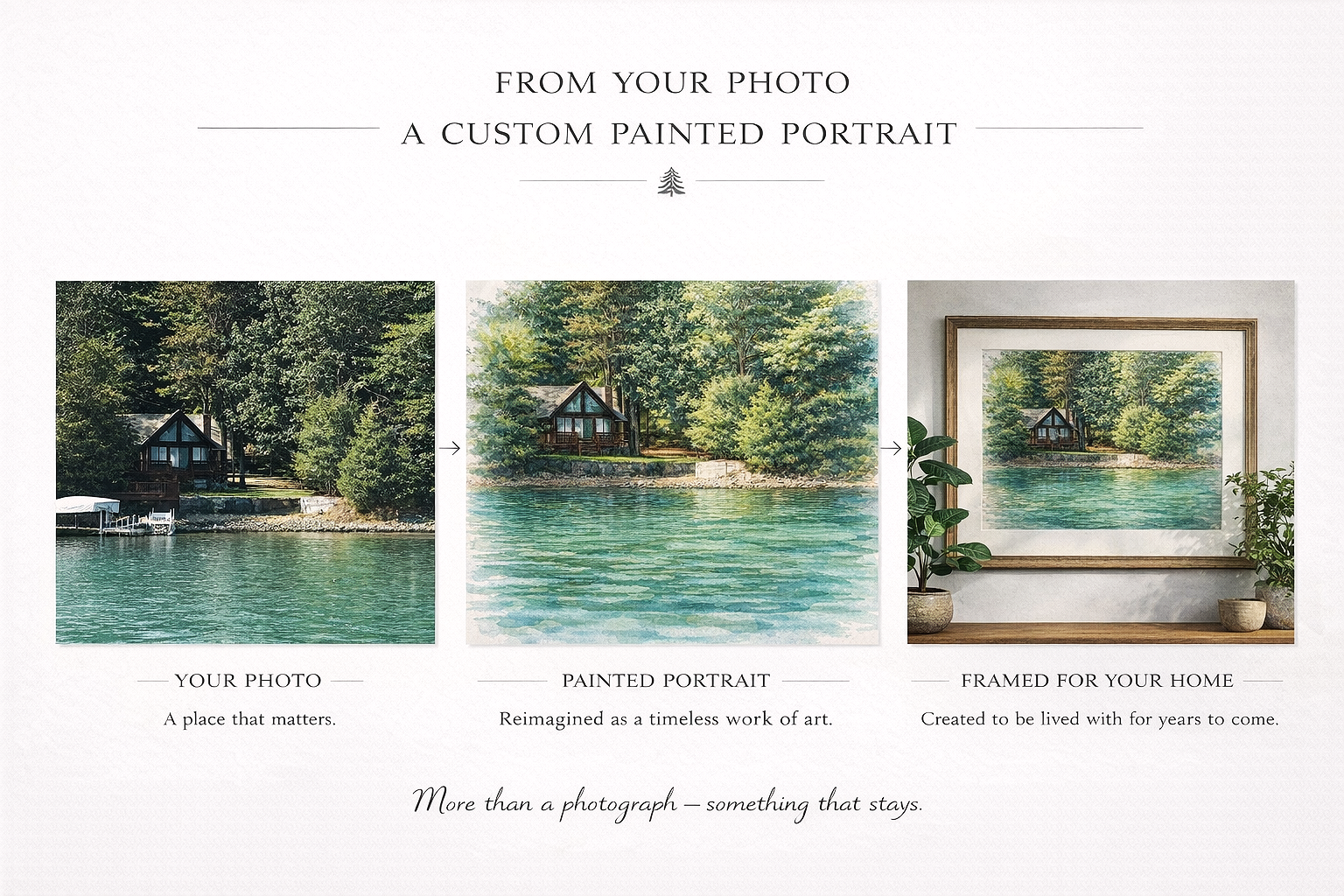 Whether it is a family lake house, a favorite boat, a dock at sunset, or the view everyone remembers, each custom piece begins with your photos and becomes a finished work of art made to feel personal, polished, and rooted in place.