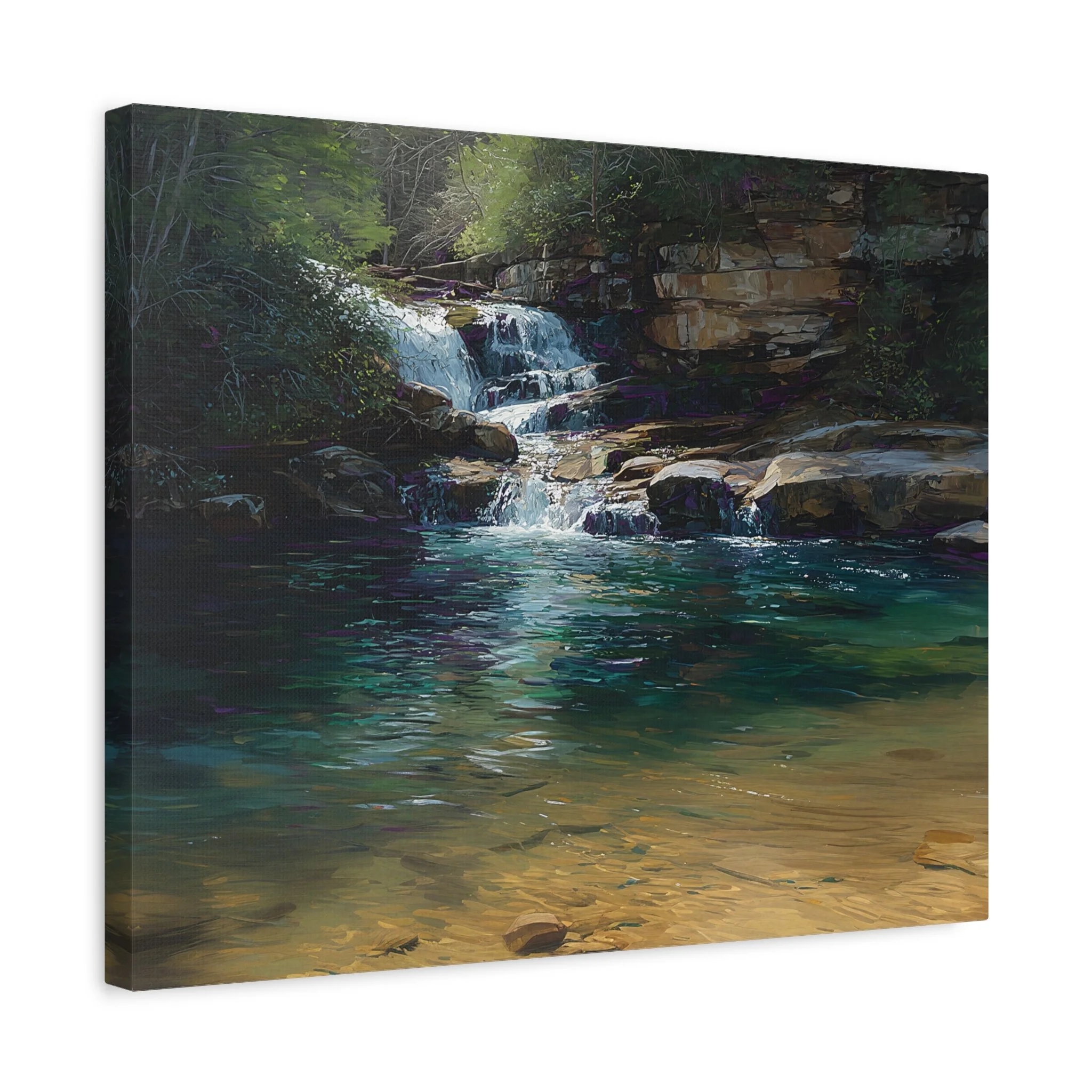 Water runs down through rock and into the edges of the lake, and the whole palette shifts: clearer, darker, more saturated, and more alive. This piece is about that moment just after a storm, when the landscape feels rinsed and newly gathered back into itself.